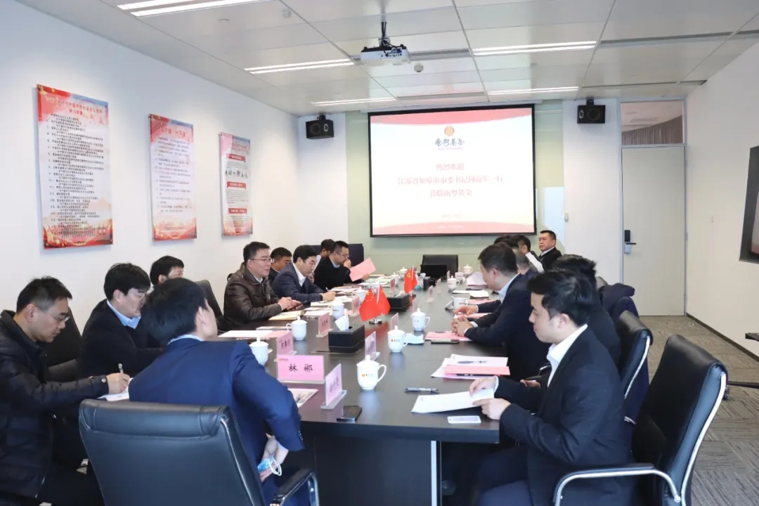 1月8日,新上任的江蘇如皋市委書記何益軍率市委副書記丁興華、市政府和高新區(qū)相關負責人一行,馬不停蹄赴粵港澳大灣區(qū)開展招商引資工作,其中首站定在南粵基金總部,雙方就全面深化產(chǎn)城合作舉行會談。會前,南粵基金林濤董事長與何益軍書記進行親切交流互動。南粵基金副總裁肖磊,達闥控股副董事長、總裁陳浩銘等參加座談活動。