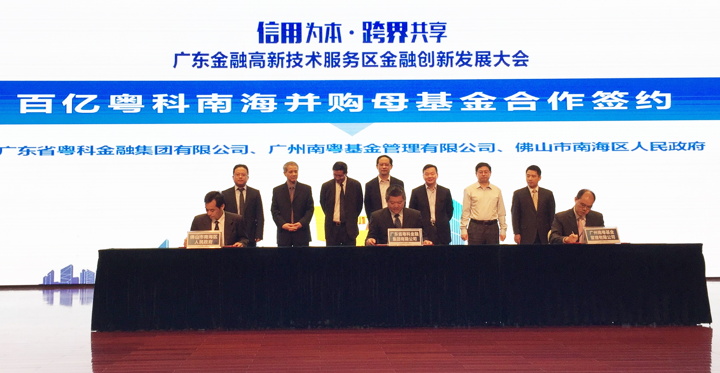 11月22日,“信用為本·跨界共享” 廣東金融高新技術(shù)服務(wù)區(qū)金融創(chuàng)新發(fā)展大會暨百億并購母基金簽約儀式在佛山市南海區(qū)隆重舉行。佛山市市長朱偉、中國人民銀行廣州分行行長王景武、省粵科集團董事長侯外林、省科技廳副廳長楊軍、省金融辦副主任張曉山、佛山市委常委南海區(qū)委書記黃志豪、廣州南粵基金管理有限公司董事長林濤出席活動并現(xiàn)場見證簽約。省市政府相關(guān)部門負(fù)責(zé)人和金融行業(yè)、企業(yè)代表參加本次簽約活動。