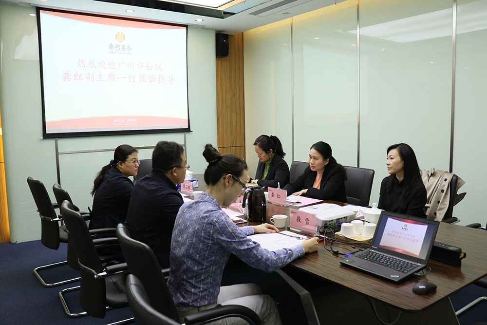 2016年12月6日,廣州市婦女聯(lián)合會副主席龔紅、發(fā)展部部長袁微及廣州睿森生物科技有限公司董事長王美賢到訪南粵基金,公司董事長林濤、副總經(jīng)理譙菲菲等接待到訪并一同出席了本次交流座談會。