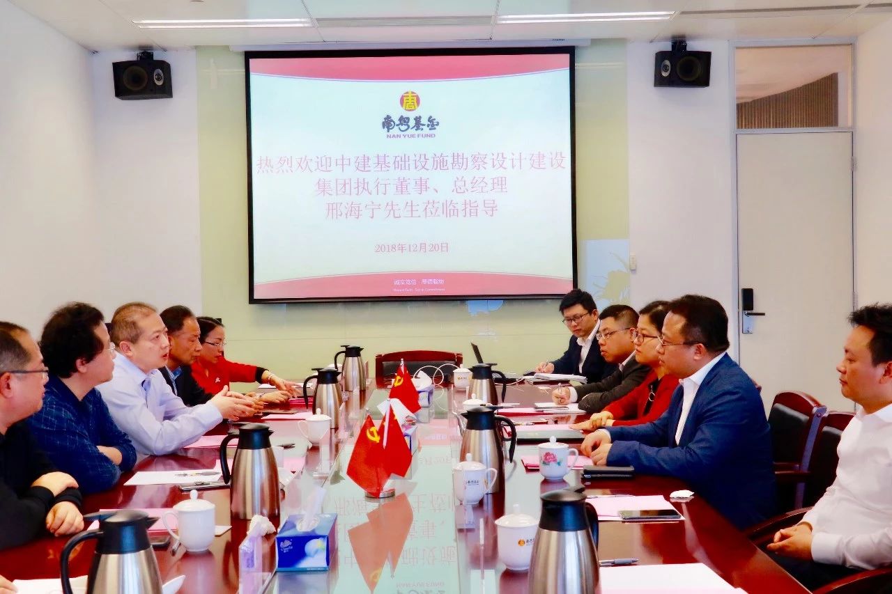 12月20日,廣州南粵基金集團有限公司(簡稱“南粵基金”)董事長林濤會見來訪的中建基礎設施勘察設計建設集團有限公司(簡稱“中建基礎設施”)董事長邢海寧一行。雙方就加強戰(zhàn)略合作進行了深入交流。