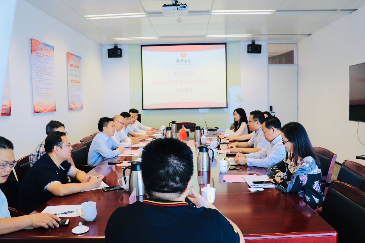 10月17日,湖南衡陽(yáng)國(guó)家高新技術(shù)產(chǎn)業(yè)開(kāi)發(fā)區(qū)(簡(jiǎn)稱(chēng)“衡陽(yáng)高新區(qū)”)管委會(huì)主任歐杏、衡陽(yáng)高新投資有限公司董事長(zhǎng)朱章金一行到訪(fǎng)廣州南粵基金集團(tuán)有限公司(簡(jiǎn)稱(chēng)“南粵基金”)。南粵基金董事長(zhǎng)林濤會(huì)見(jiàn)了來(lái)訪(fǎng)的客人。雙方就進(jìn)一步深化交流合作舉行會(huì)談。