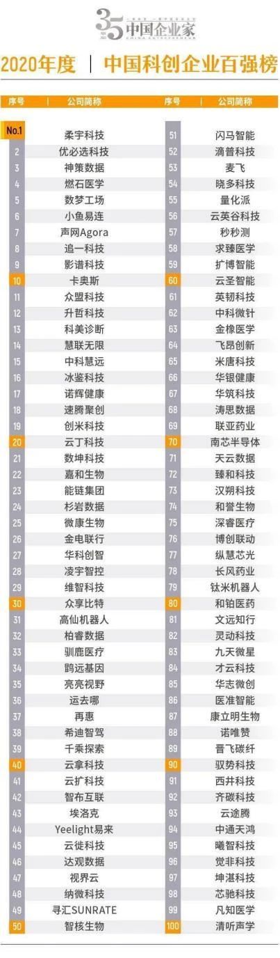 中國科創(chuàng)企業(yè)百強榜單是《中國企業(yè)家》雜志社面向新一代信息技術、高端智能裝備、新能源、新材料、生物醫(yī)藥等集聚科技創(chuàng)新及新基建領域的企業(yè),從科技實力、投資價值、成長價值等指標入手,綜合評估而得出的最終榜單。20年來,該雜志評定的上榜企業(yè),幾乎囊括了當時中國成長最快、創(chuàng)新性最強的早期科技企業(yè),具有行業(yè)風向標意義,騰訊、百度、小米、京東、美團、滴滴等巨頭都曾在早年上榜。此次入選的8家被投企業(yè),分布在智能城市、自動駕駛、智能農業(yè)、智能生物技術、下一代智能芯片等多個領域,憑借其在大數據與人工智能等行業(yè)的創(chuàng)新實踐,從眾多企業(yè)中脫穎而出。