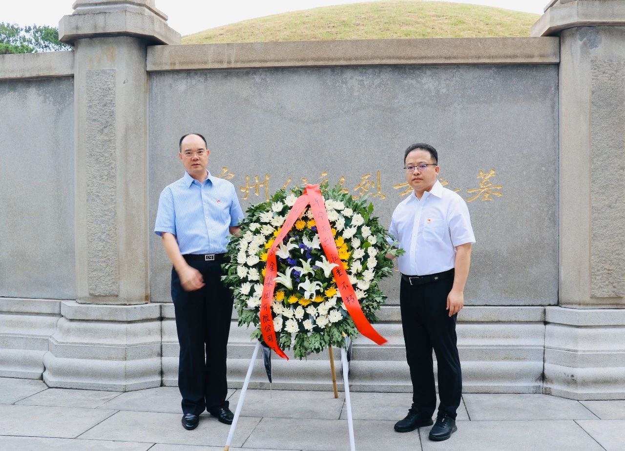 林濤書記(右)與曾金賢副書記共同向廣州公社烈士之墓敬獻(xiàn)花圈