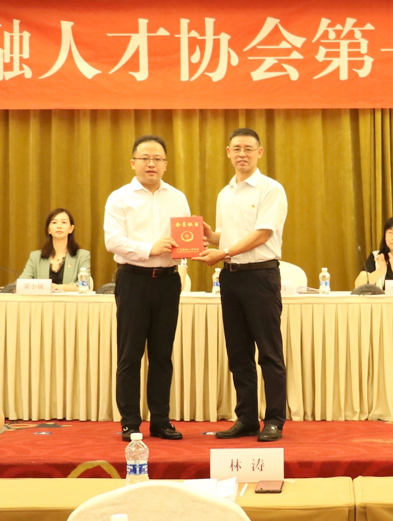 王德昌調(diào)研員為林濤董事長(左)頒發(fā)聘書
