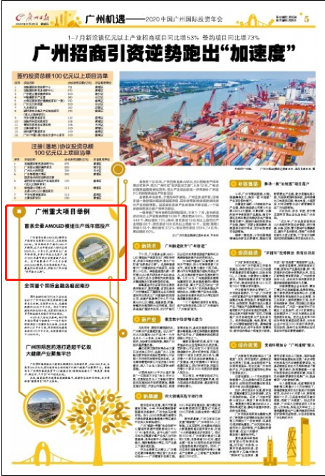 今年投資年會(huì)簽約項(xiàng)目達(dá)266個(gè),簽約的重大項(xiàng)目協(xié)議總投資額達(dá)6540億元,主要集中在新一代信息技術(shù)、數(shù)字經(jīng)濟(jì)、金融服務(wù)以及文化旅游等領(lǐng)域,其中包括廣州南粵基金集團(tuán)有限公司(簡稱“南粵基金”)投資并提供綜合金融服務(wù)的廣州國顯科技有限公司(簡稱“廣州國顯”)項(xiàng)目。本次年會(huì)上,廣州國顯作為廣州市重點(diǎn)招商引資項(xiàng)目向全球推介,列入廣州國際投資年會(huì)會(huì)刊,受到主流媒體廣泛關(guān)注。