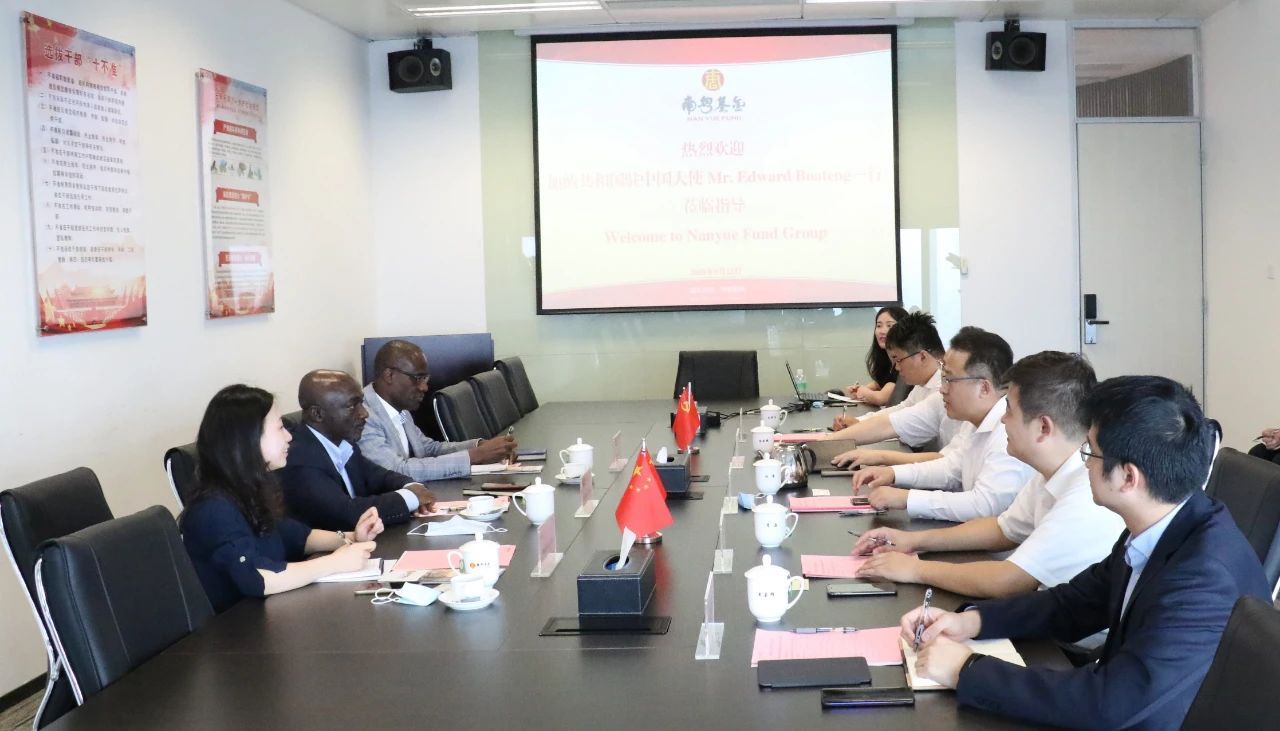 9月25日,加納共和國駐華大使Edward Boateng一行到訪廣州南粵基金集團有限公司(簡稱“南粵基金”),與林濤董事長會晤并就共同推進“一帶一路”倡議和中非產(chǎn)融對接合作開展座談。
