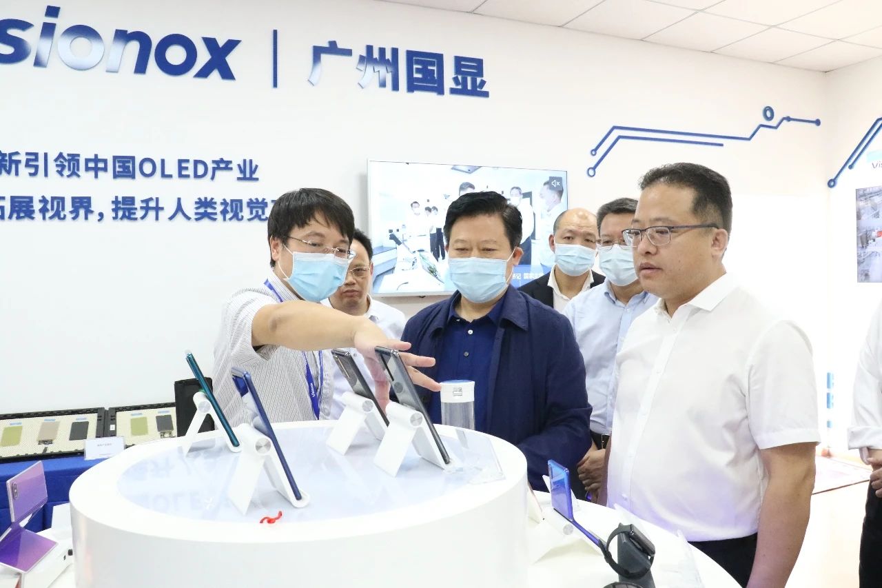 劉志仁市長(zhǎng)考察廣州國(guó)顯全柔AMOLED模組線項(xiàng)目