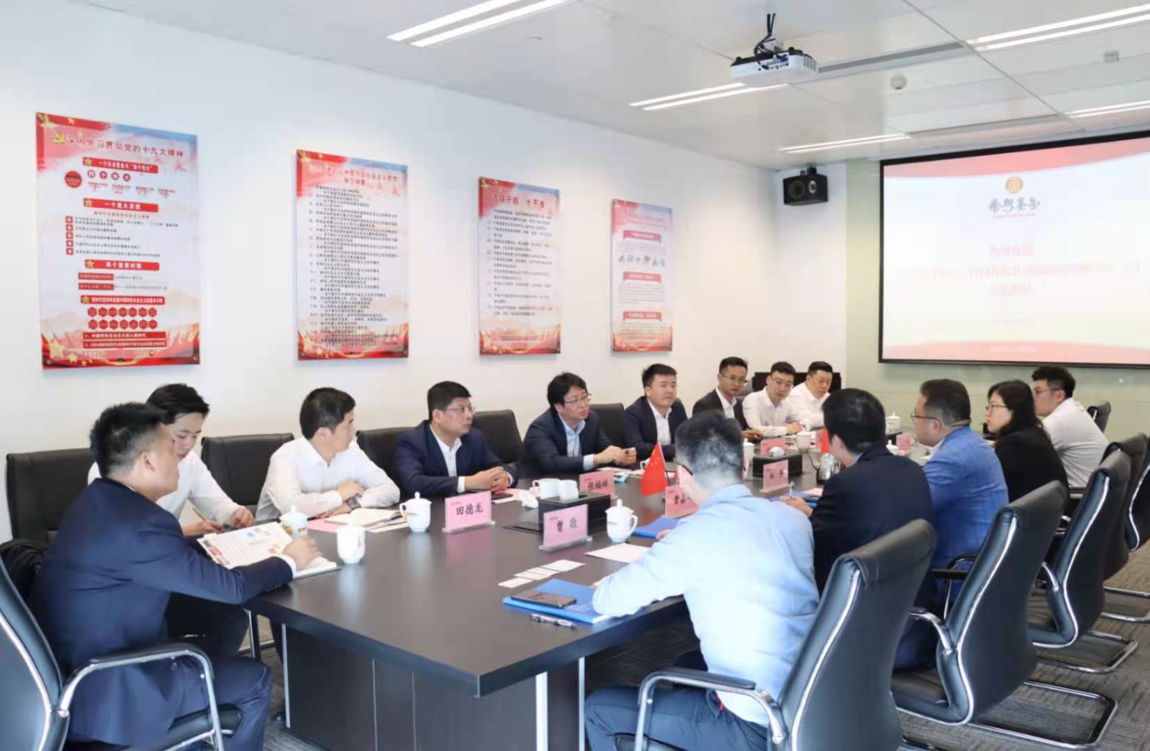 中建八局南方公司副總經(jīng)理向遠(yuǎn)鵬、中建八局投資發(fā)展公司華南分公司黨總支書記許云龍,南粵基金副總裁譙菲菲等參加會談。