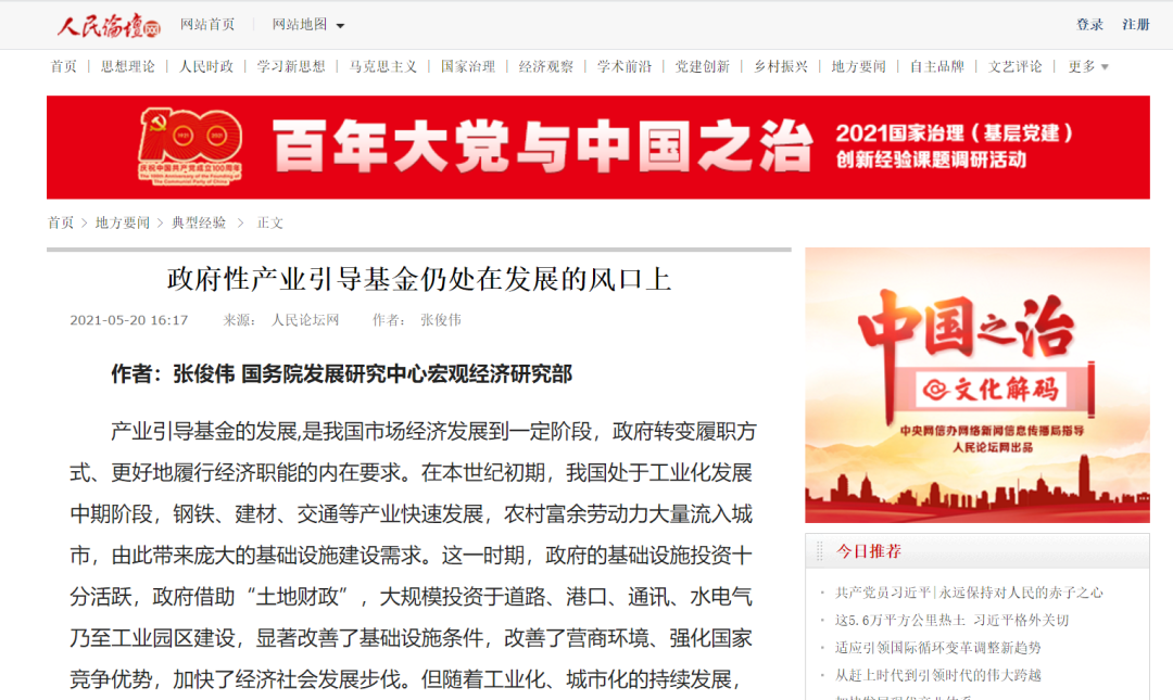 課題組主要專家成員國(guó)務(wù)院發(fā)展研究中心宏觀經(jīng)濟(jì)研究部二級(jí)巡視員張俊偉在人民論壇網(wǎng)撰文,以南粵基金為案例,對(duì)政府性產(chǎn)業(yè)引導(dǎo)基金發(fā)展進(jìn)行深入分析,并指出:產(chǎn)業(yè)引導(dǎo)基金仍面臨廣闊發(fā)展空間,仍處在“時(shí)代發(fā)展的風(fēng)口”之上,在科技自立自強(qiáng)、產(chǎn)業(yè)基礎(chǔ)高級(jí)化、經(jīng)濟(jì)運(yùn)行、安全發(fā)展等方面大有作為。