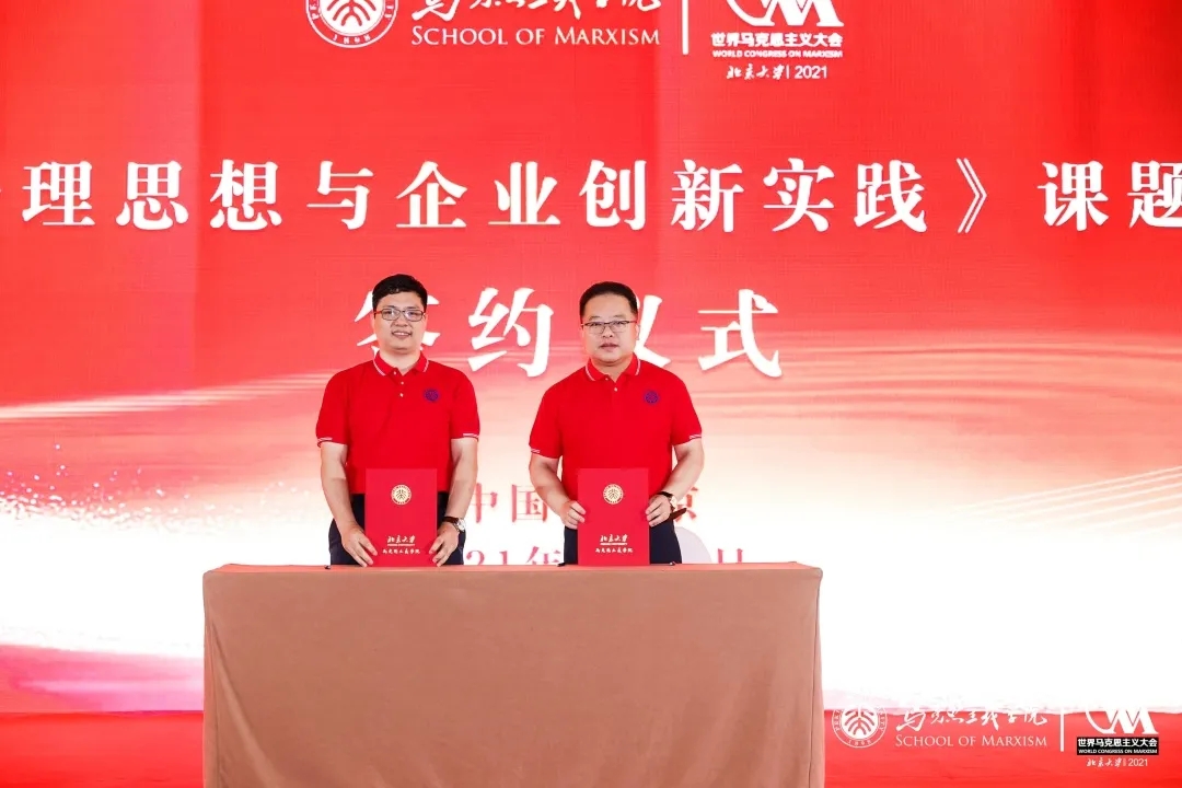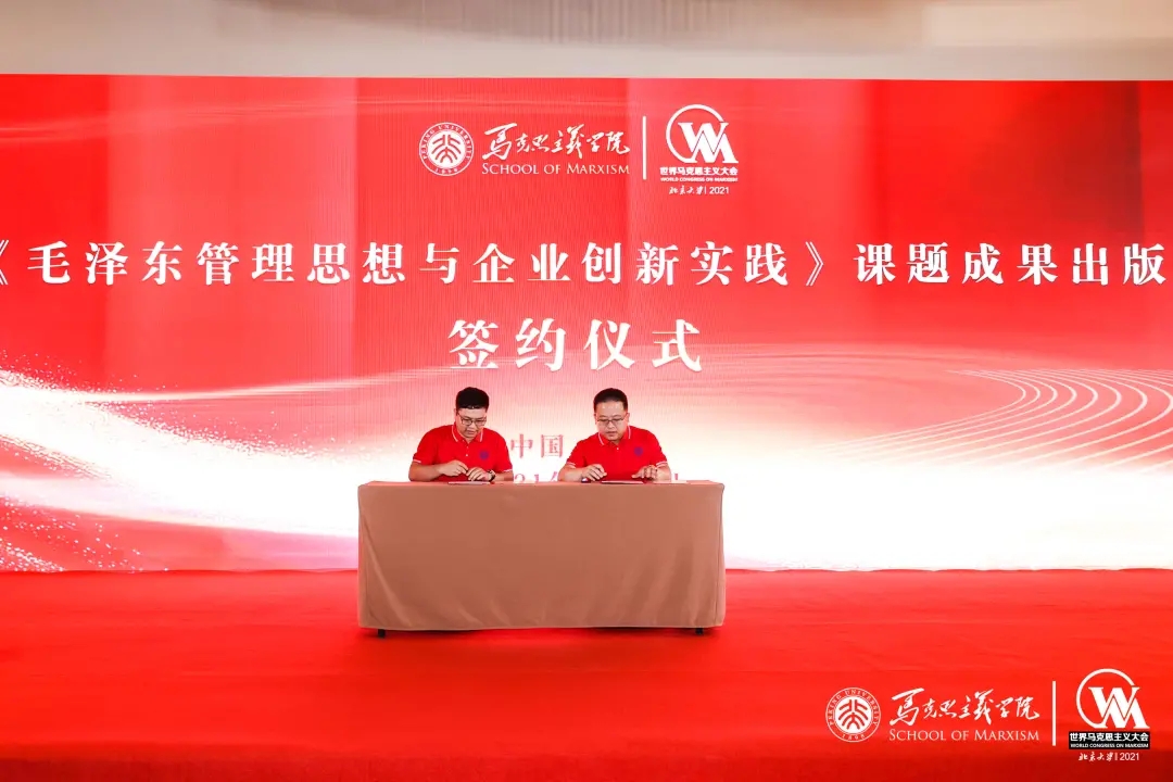 7月17-7月18日,第三屆世界馬克思主義大會(huì)在北京大學(xué)召開(kāi)。期間,南粵基金與北京大學(xué)毛澤東管理思想高級(jí)研究班(簡(jiǎn)稱(chēng)“毛管班”)聯(lián)合課題成果——《毛澤東管理思想與企業(yè)創(chuàng)新實(shí)踐》出版簽約儀式正式舉行。毛管班建設(shè)委員會(huì)常務(wù)理事、毛管八班班長(zhǎng)、南粵基金董事長(zhǎng)林濤,與人民出版社責(zé)任編輯、讀書(shū)會(huì)辦公室負(fù)責(zé)人劉江波代表雙方簽約。