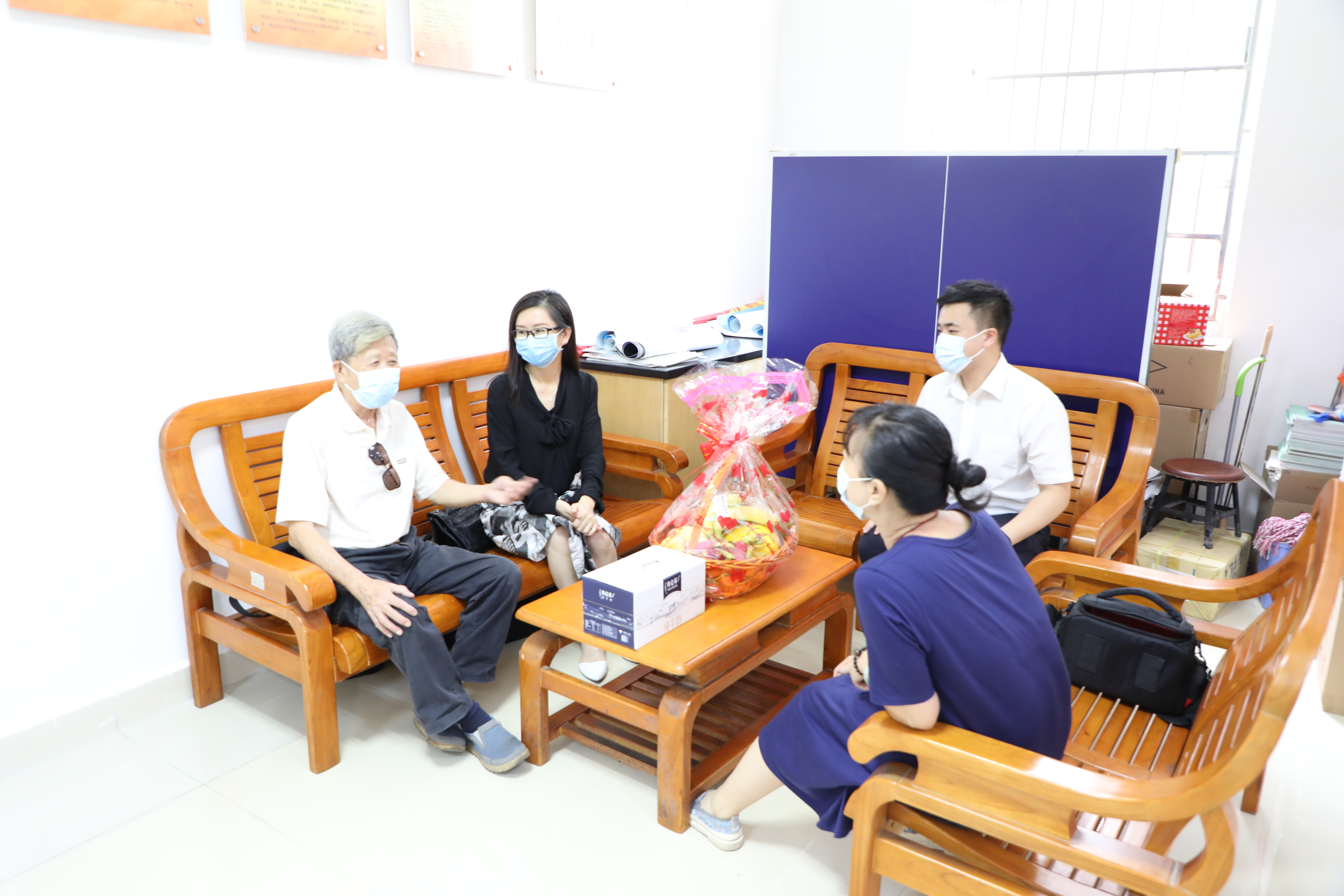 王亞敏總裁助理(左二)與盧思誠(chéng)老戰(zhàn)士(左一)敘家常,重拾紅色記憶