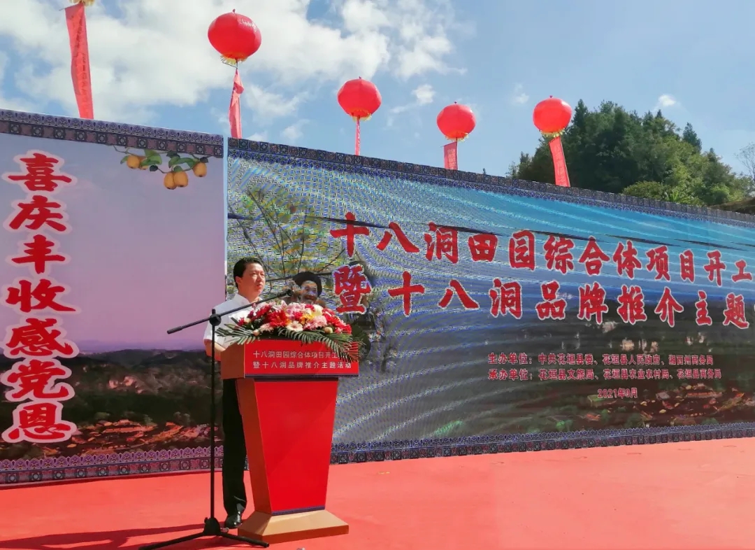 9月25日,精準扶貧首倡之地——湘西州花垣縣十八洞田園綜合體項目開工典禮暨十八洞品牌推介主題活動順利舉行。湘西州委書記虢正貴出席儀式并宣布項目開工和活動開幕,州委副書記、花垣縣委書記廖良輝致辭,州委常委楊彥芳,州委秘書長、辦公室主任向邦偉及州委宣傳部、文旅廣電局、商務局、住建局、自然資源局、教體局等單位負責人出席,南粵基金總裁曾金賢代表業(yè)主單位致辭并見證簽約活動,花垣縣委副書記、縣長隆立新主持儀式,縣委副書記周勝益作十八洞田園綜合體項目介紹及十八洞系列品牌推介。