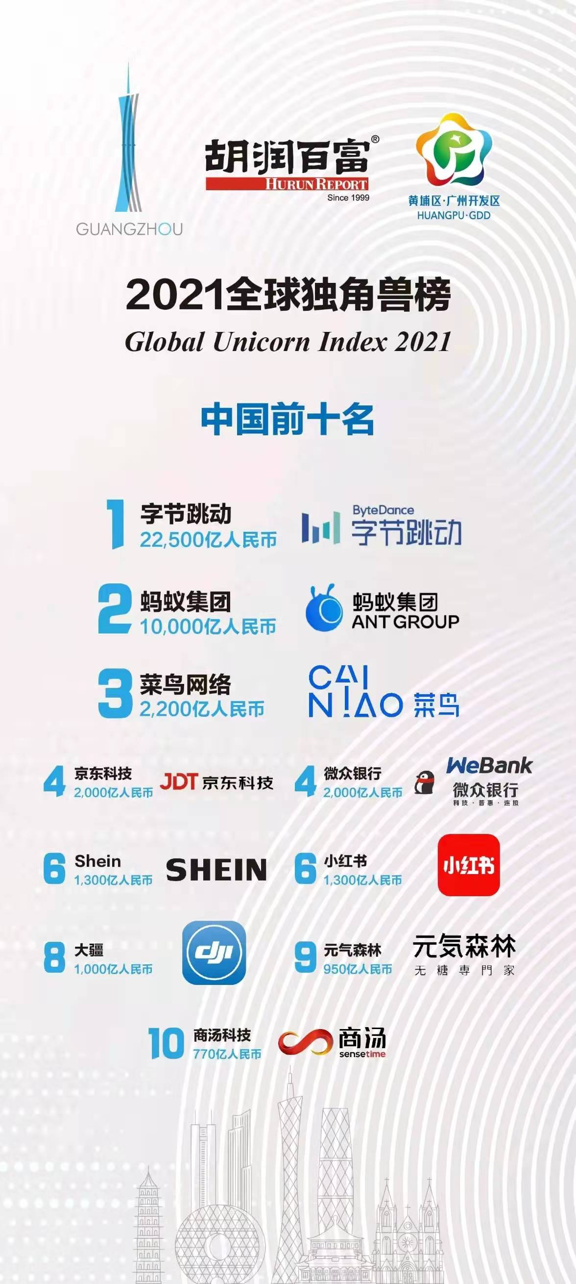 近日,胡潤百富在廣州向全球首發(fā)《2021全球獨角獸榜》(Global Unicorn Index 2021),這是胡潤百富自2019年以來第三次發(fā)布全球獨角獸榜,南粵基金投資企業(yè)商湯科技上榜,名列全國前十,穩(wěn)居人工智能行業(yè)全國最大獨角獸企業(yè)。