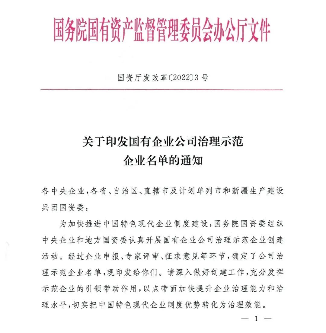 據(jù)悉,為加快推進中國特色現(xiàn)代企業(yè)制度建設(shè),國務(wù)院國資委在2021年首次組織中央企業(yè)和地方國資委,開展國有企業(yè)公司治理示范企業(yè)創(chuàng)建活動,旨在以點帶面提升國有企業(yè)治理能力和治理水平,推動中國特色現(xiàn)代企業(yè)制度優(yōu)勢轉(zhuǎn)化為治理效能,實現(xiàn)高質(zhì)量發(fā)展。