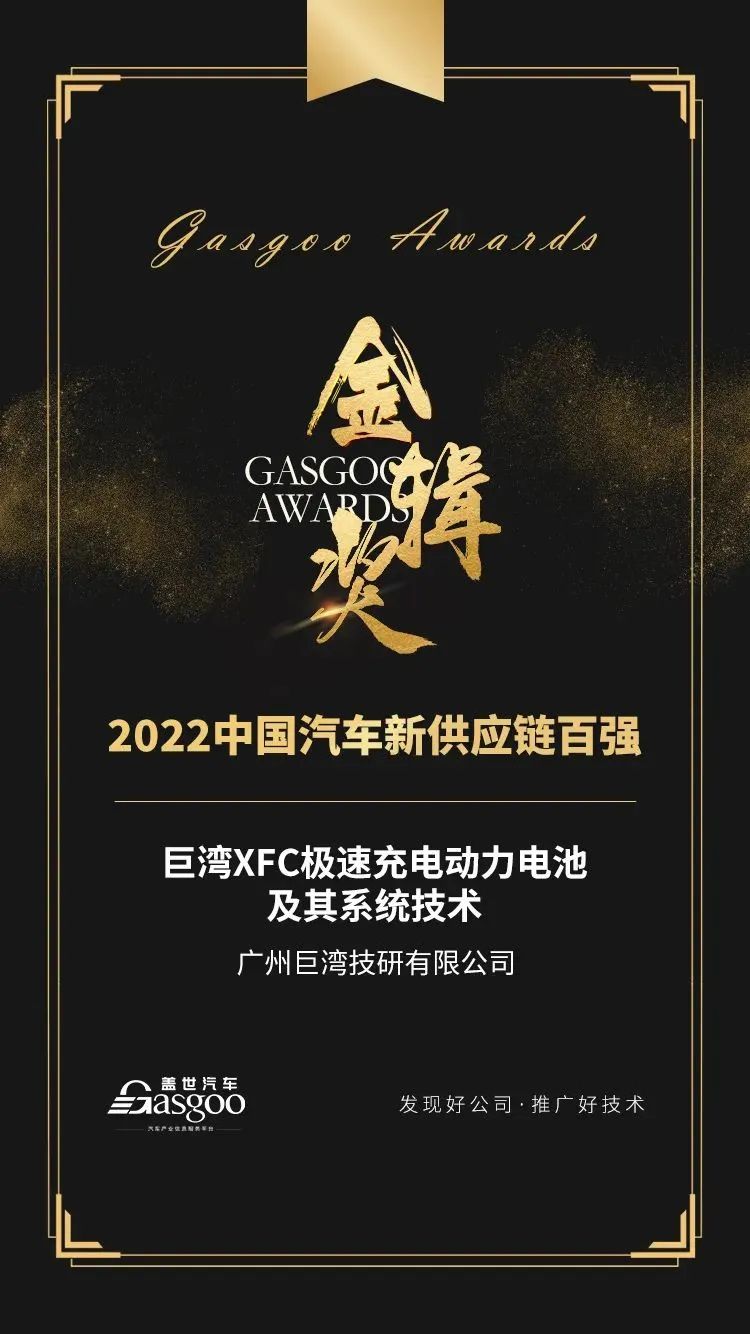 10月26日,第四屆“金輯獎(jiǎng)”中國汽車新供應(yīng)鏈百強(qiáng)頒獎(jiǎng)典禮在上海盛大開幕。在來自電池行業(yè)內(nèi)眾多知名企業(yè)及供應(yīng)商的近千項(xiàng)創(chuàng)新產(chǎn)品中,南粵基金投資企業(yè)——廣州巨灣技研有限公司(簡稱“巨灣技研”) “XFC極速充電技術(shù)”憑借行業(yè)領(lǐng)先的技術(shù)實(shí)力及應(yīng)用前景脫穎而出,斬獲動(dòng)力總成電氣化領(lǐng)域“中國汽車新供應(yīng)鏈百強(qiáng)”稱號(hào)。