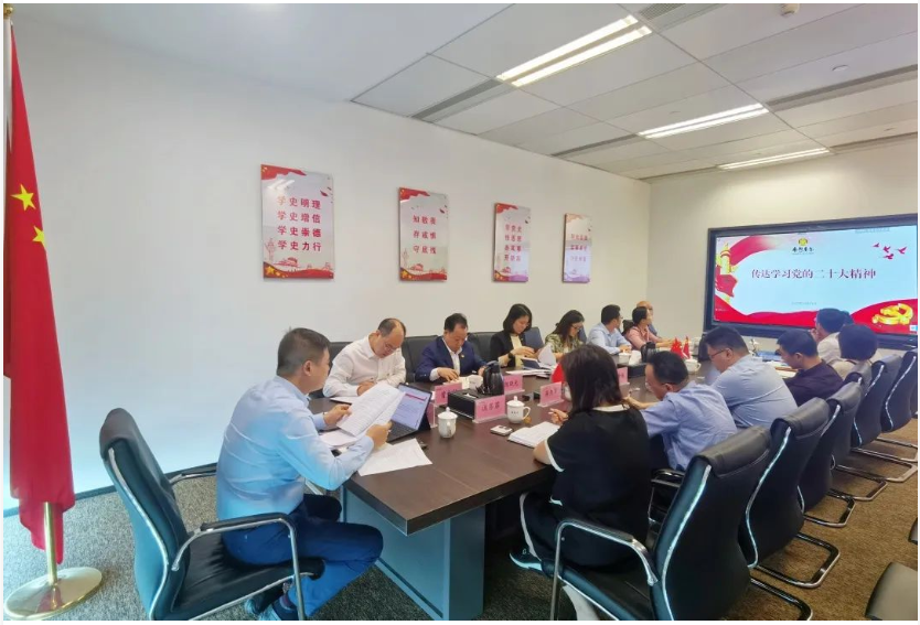 近日,南粵基金召開專題會議,傳達學習貫徹黨的二十大和二十屆一中全會精神,并結合工作實際研究貫徹落實意見。公司全體高管、中層干部參會。
