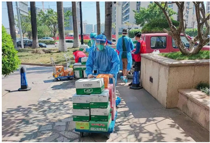 “阿伯,您開開門,大米來了”,小區(qū)封控第一天,突擊隊(duì)曹甜同志在掃樓排查時(shí)收到一名70多歲老人求助:家里的米缸已經(jīng)見底。在深入了解老人實(shí)際困難后,曹甜同志立即聯(lián)系購買了一袋大米,當(dāng)天送到了老人家門口。