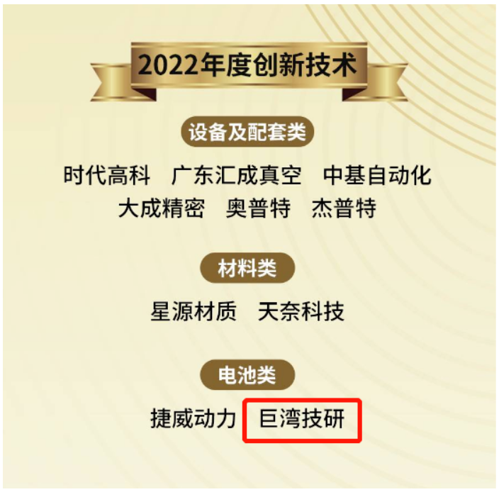 近日,以“引領(lǐng)全球之中國力量”為主題,2022高工鋰電金球獎頒獎典禮隆重舉行。南粵基金投資企業(yè)巨灣技研、中偉股份分別榮獲高工金球獎“2022年度創(chuàng)新技術(shù)”“2022中國鋰電材料TOP50”和“2022年度上游和再生資源企業(yè)”等三大獎項。