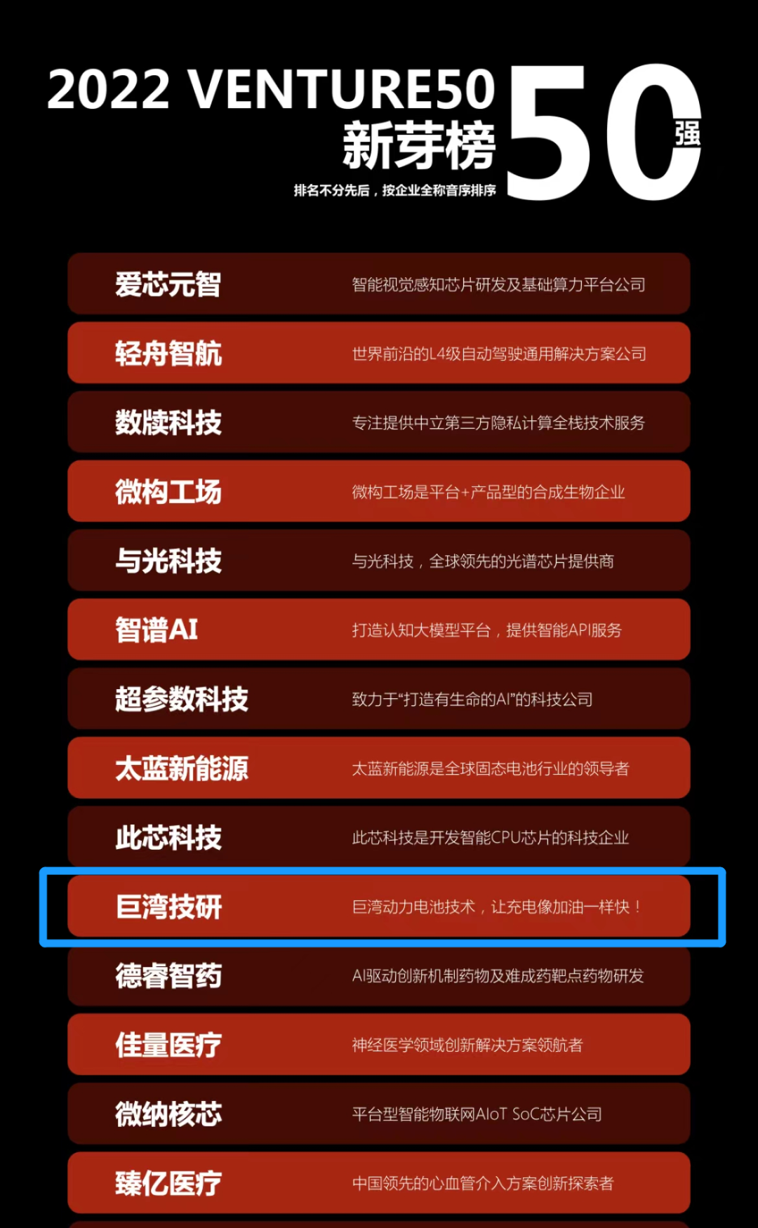 截至2022年10月統(tǒng)計,Venture50榜單累計參選企業(yè)70000+,幫助企業(yè)融資超過358億美元,近三年Venture50入榜企業(yè)后續(xù)融資率達(dá)61%,上市率約27.8%,積極促成創(chuàng)投支持產(chǎn)業(yè)落地、服務(wù)實體經(jīng)濟,引導(dǎo)更多創(chuàng)投與創(chuàng)新力量推動發(fā)展,全方位為創(chuàng)業(yè)創(chuàng)新創(chuàng)造厚植土壤。巨灣技研榮登兩大榜單,是科技創(chuàng)新領(lǐng)域與資本市場對其強勁成長潛力的雙重認(rèn)可。