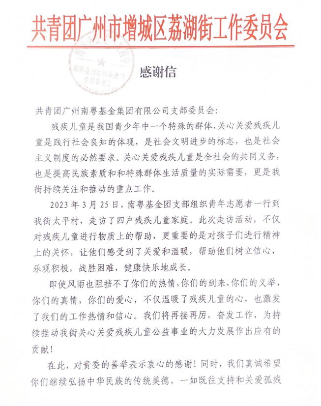 南粵基金還組織青年志愿者一行10余人來到增城區(qū)荔湖街太平村,走訪慰問了四戶殘疾兒童家庭。青年志愿者們與家長談心、拉家常,深入詢問兒童的身體情況和家庭狀況,鼓勵孩子要保持堅強(qiáng)和樂觀心態(tài),增強(qiáng)戰(zhàn)勝困難的信心和勇氣,努力做陽光樂觀的新時代好少年。