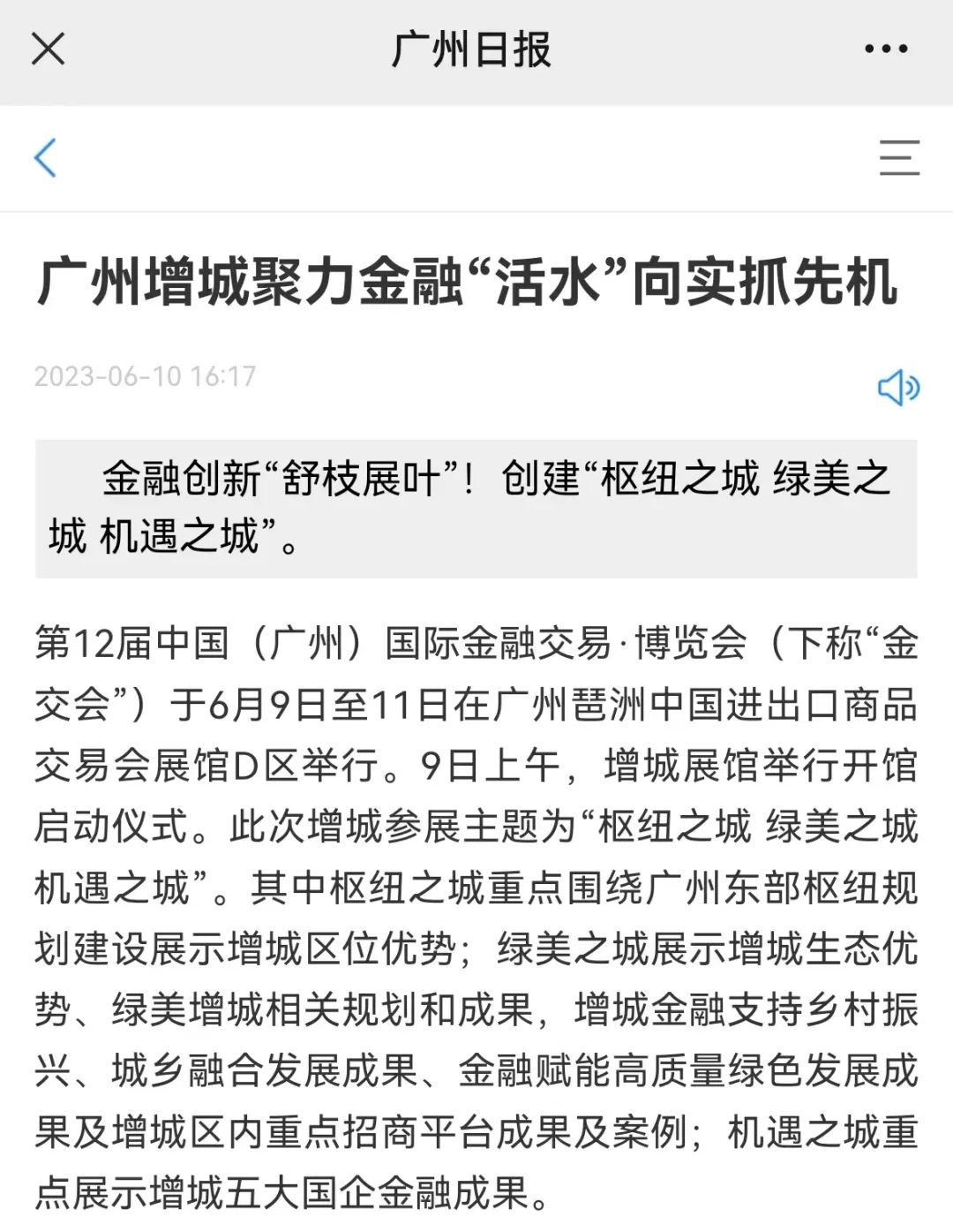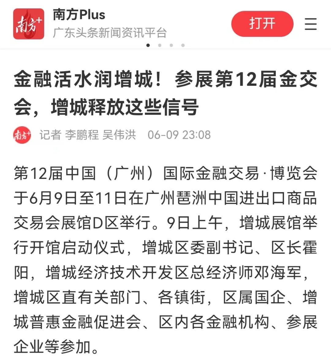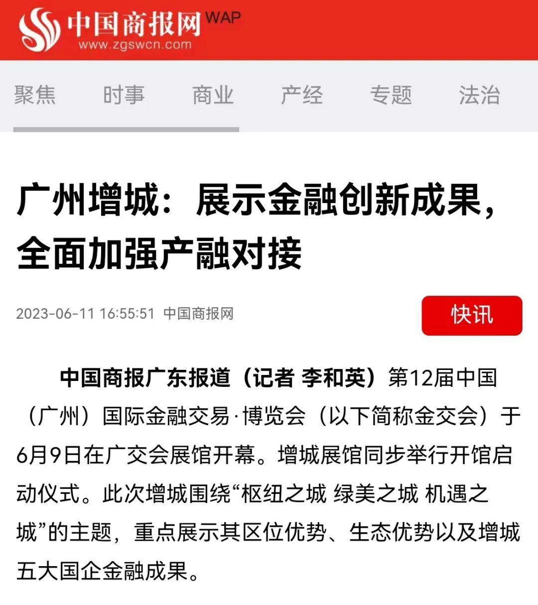 目光向東,增城大有可為!腳步向前,金融大有作為。連日來,增城金融的金交會(huì)之旅受到了新華網(wǎng)、中新網(wǎng)、南方日?qǐng)?bào)、廣州日?qǐng)?bào)、21 世紀(jì)經(jīng)濟(jì)報(bào)道等國(guó)家省市區(qū)主流媒體廣泛關(guān)注、爭(zhēng)相報(bào)道!
