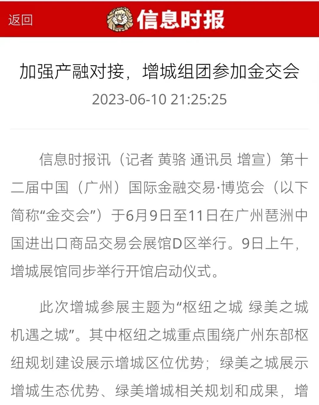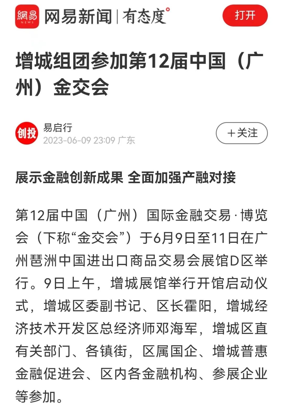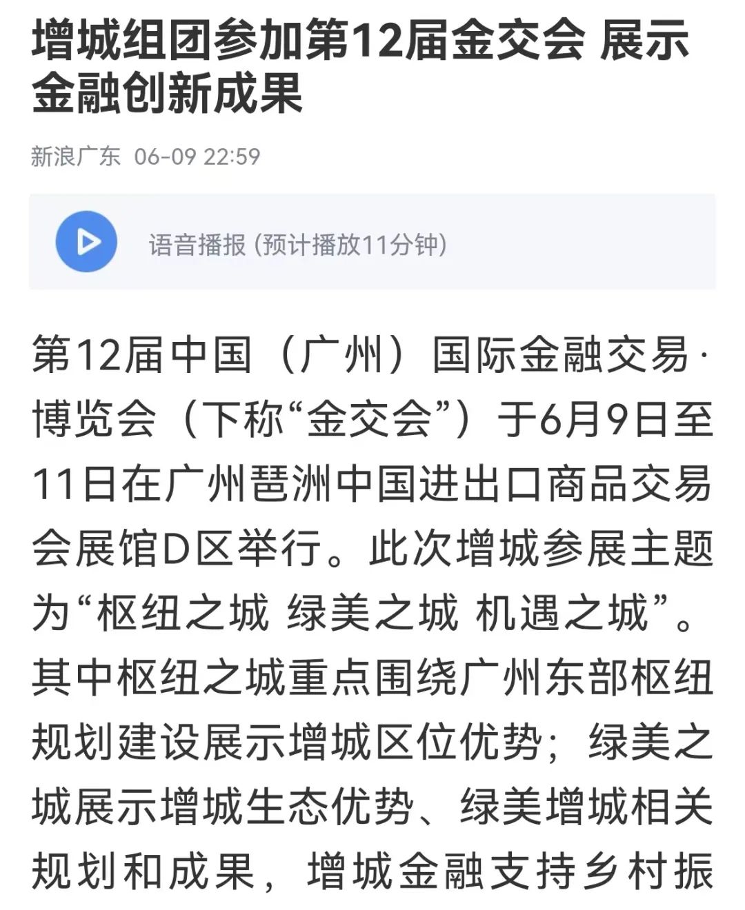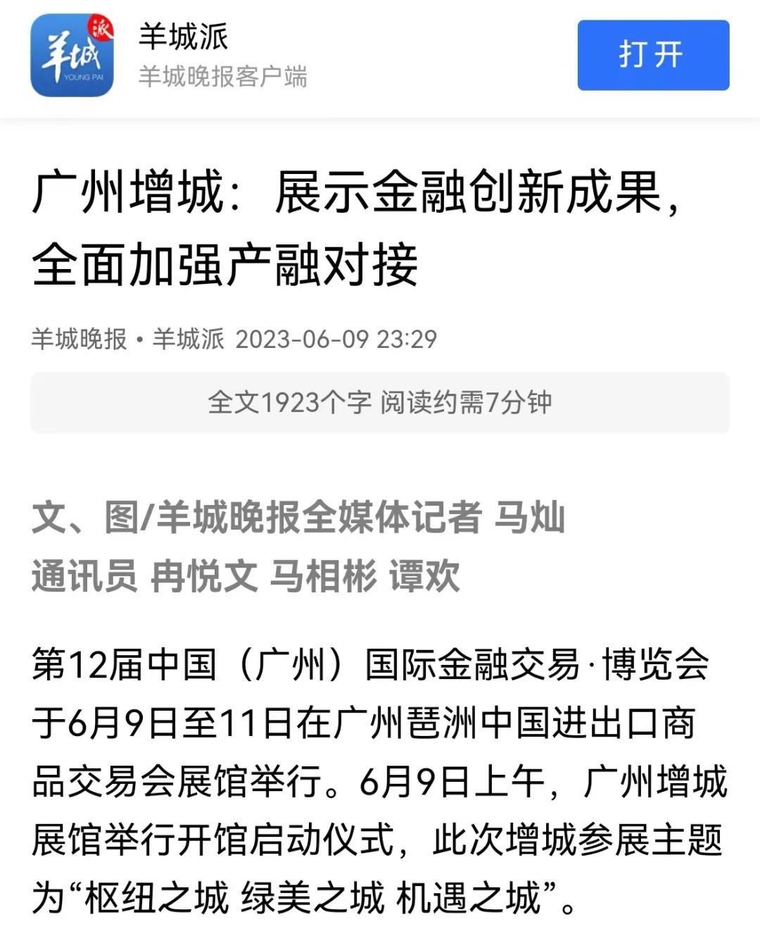 目光向東,增城大有可為!腳步向前,金融大有作為。連日來,增城金融的金交會(huì)之旅受到了新華網(wǎng)、中新網(wǎng)、南方日?qǐng)?bào)、廣州日?qǐng)?bào)、21 世紀(jì)經(jīng)濟(jì)報(bào)道等國(guó)家省市區(qū)主流媒體廣泛關(guān)注、爭(zhēng)相報(bào)道!
