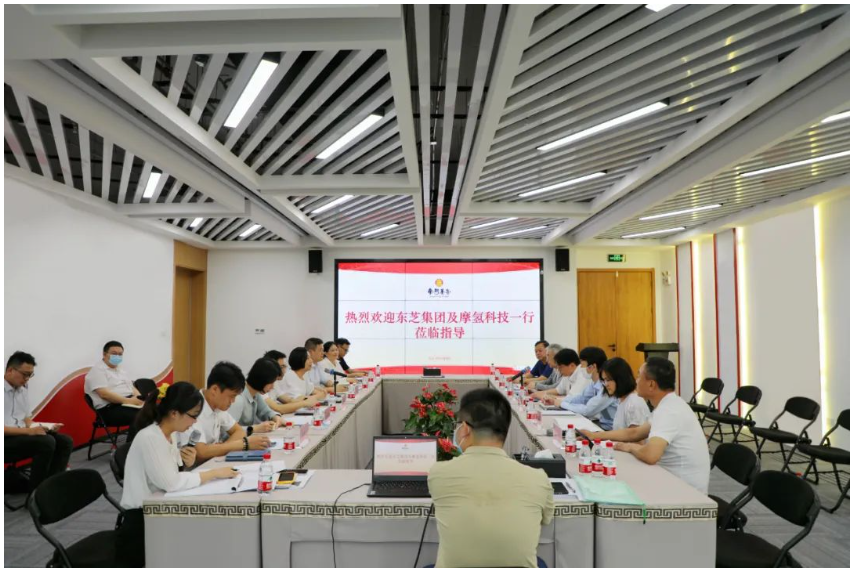 東芝能源(日本)氫能事業(yè)部部長知沢洋、東芝(中國)副總裁梁杰、摩氫科技董事長王戈、全國工商聯(lián)新能源商會副秘書長張燕東,開發(fā)區(qū)投促局副局長范國雄、區(qū)發(fā)展和改革局區(qū)大灣區(qū)辦專職副主任傅婧、南粵基金總裁助理李懿栩等參加座談。