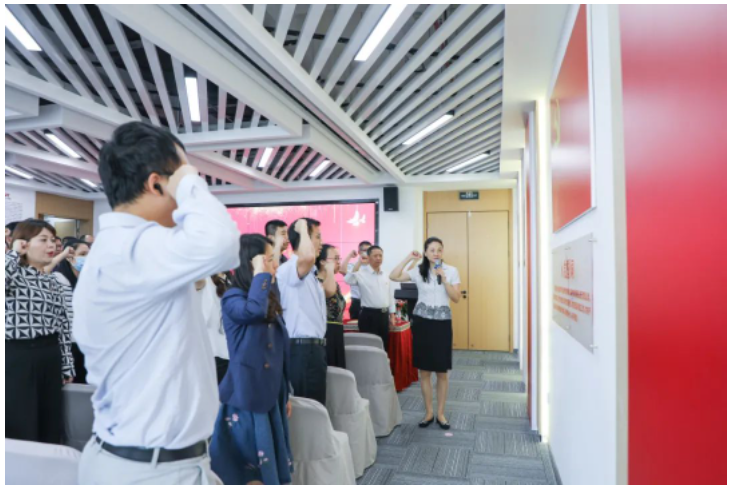 活動在莊嚴(yán)的國歌聲中拉開帷幕。隨后,陳一敏副主席帶領(lǐng)全體黨員在黨旗前莊嚴(yán)宣誓,重溫入黨誓詞。一聲聲鏗鏘有力的宣誓響徹會場,激勵著在場的每一位黨員,表達了對黨、對祖國和對人民的無限忠誠。