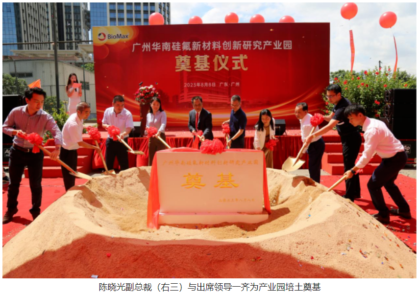 8月8日,廣州華南硅氟新材料創(chuàng)新研究產(chǎn)業(yè)園正式奠基,該產(chǎn)業(yè)園由南粵基金旗下平臺(tái)中小微金服培育企業(yè)——廣東標(biāo)美硅氟新材料有限公司(簡(jiǎn)稱(chēng)“廣東標(biāo)美”)投資建設(shè)。增城區(qū)科工商信局副局長(zhǎng)鄧超群、開(kāi)發(fā)區(qū)科技創(chuàng)新局四級(jí)調(diào)研員姚志勤,永寧街黨工委委員、街道辦副主任劉朝蓬,廣東標(biāo)美董事長(zhǎng)黃振宏、副總經(jīng)理林文生,南粵基金副總裁、中小微金服董事長(zhǎng)陳曉光等出席儀式。
