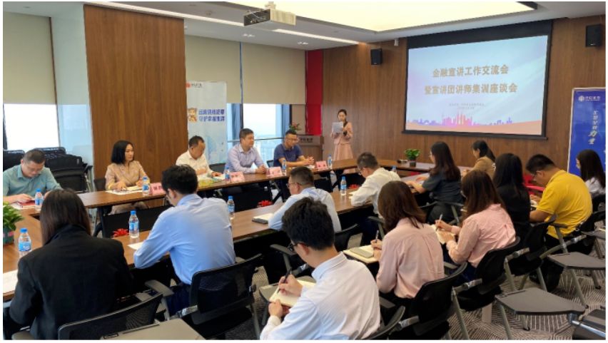 為全面提升普惠金融宣講團(tuán)講師的專業(yè)素養(yǎng)和宣講水平,提高增城區(qū)金融宣講工作效率,10月18日下午,增城普惠金融促進(jìn)會(簡稱“普促會”)在中信證券增城營業(yè)部召開金融宣講工作交流會暨宣講團(tuán)講師集訓(xùn)座談會,增城區(qū)發(fā)改局四級調(diào)研員林利,普促會會長、南粵基金集團(tuán)董事長肖磊、普促會執(zhí)行會長陳曉光,校方代表廣州華商學(xué)院保衛(wèi)處處長楊燕平,以及來自農(nóng)業(yè)銀行增城支行、興業(yè)銀行增城支行、平安產(chǎn)險增城支公司、人保財險增城支公司、中國人壽保險增城支公司、中信證券增城營業(yè)部等20多名金融機(jī)構(gòu)業(yè)務(wù)精英、宣講團(tuán)成員參會。