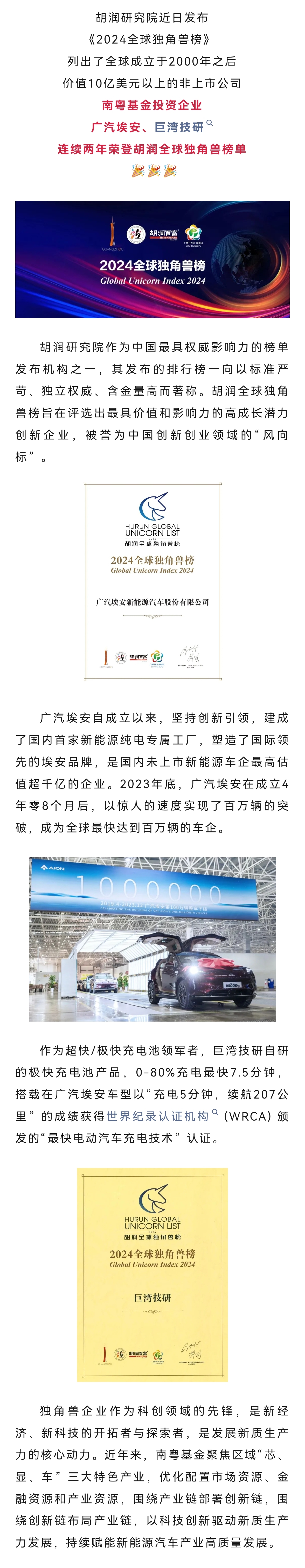 2024全球獨(dú)角獸榜,南粵基金投資2家企業(yè)上榜!