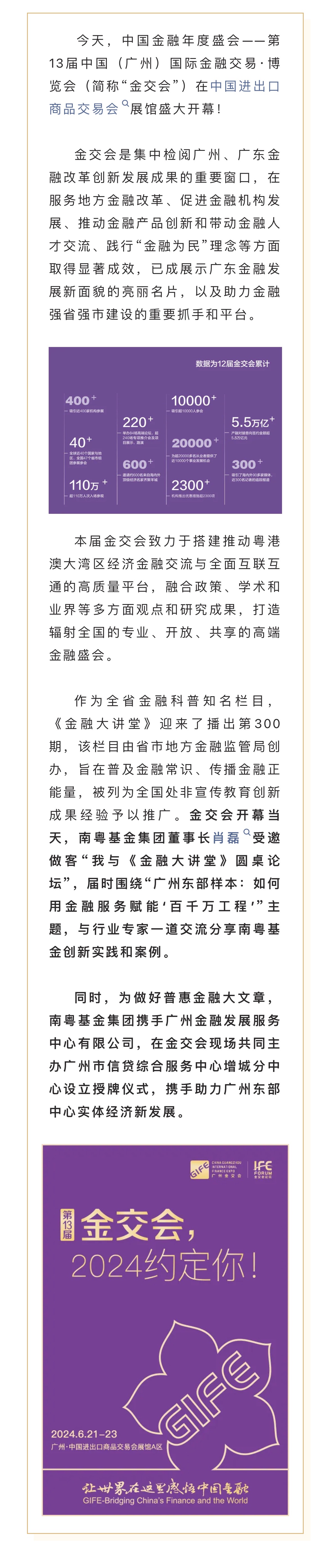 期待新“金”彩!南粵基金集團(tuán)亮相金交會