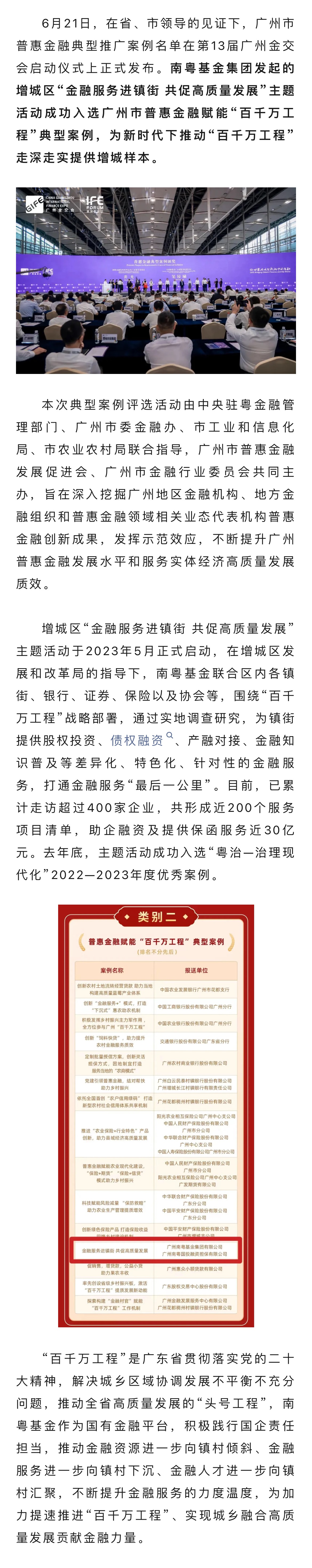 金融服務進鎮(zhèn)街 正式入選廣州普惠金融典型案例