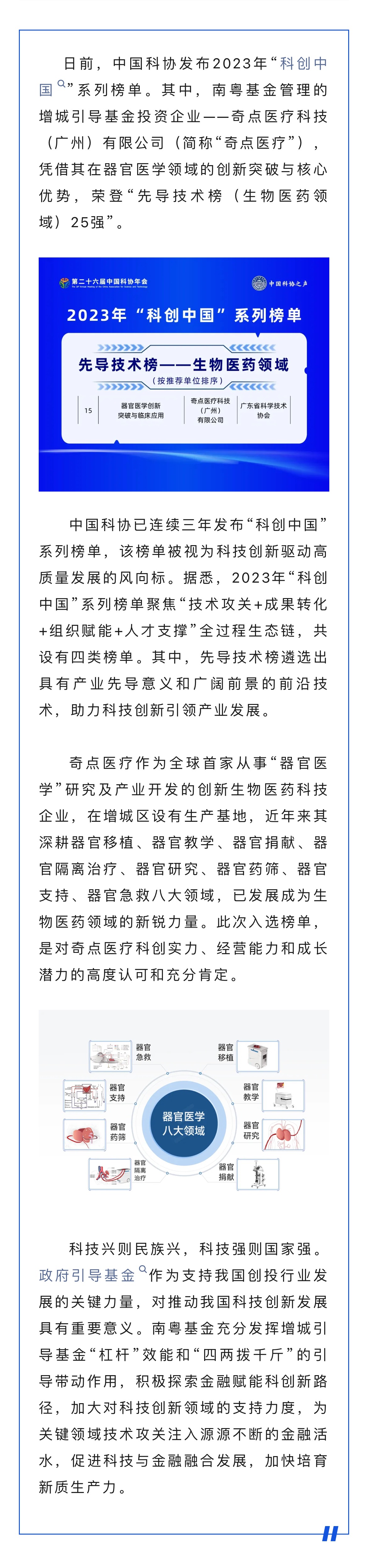 增城引導基金投資企業(yè)奇點醫(yī)療榮登“科創(chuàng)中國”榜單