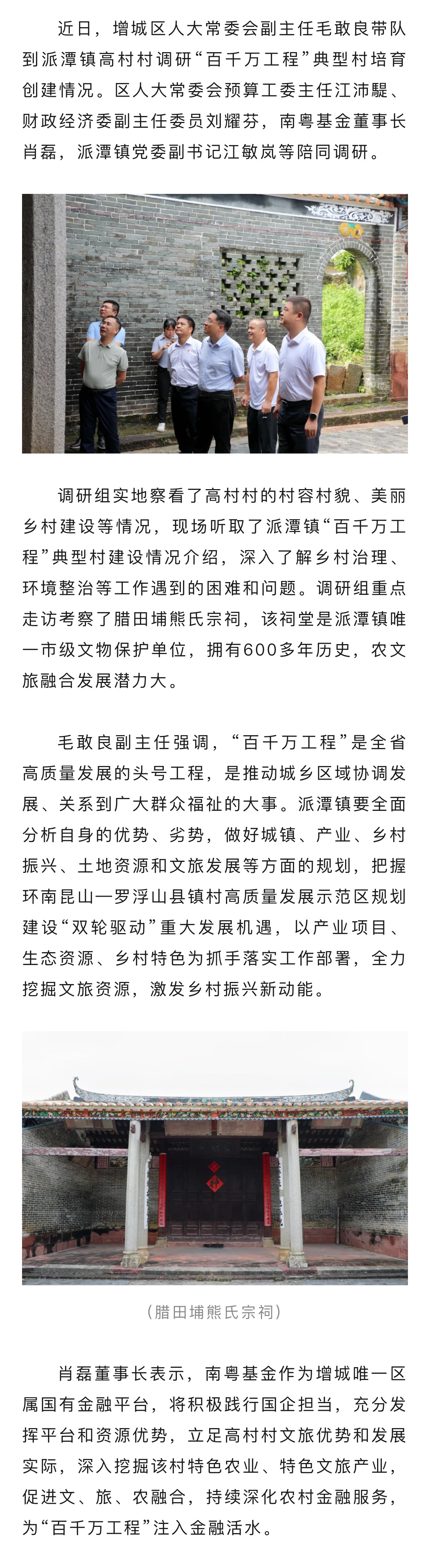 增城區(qū)人大常委會(huì)副主任毛敢良帶隊(duì)南粵基金開展“百千萬工程”典型村調(diào)研