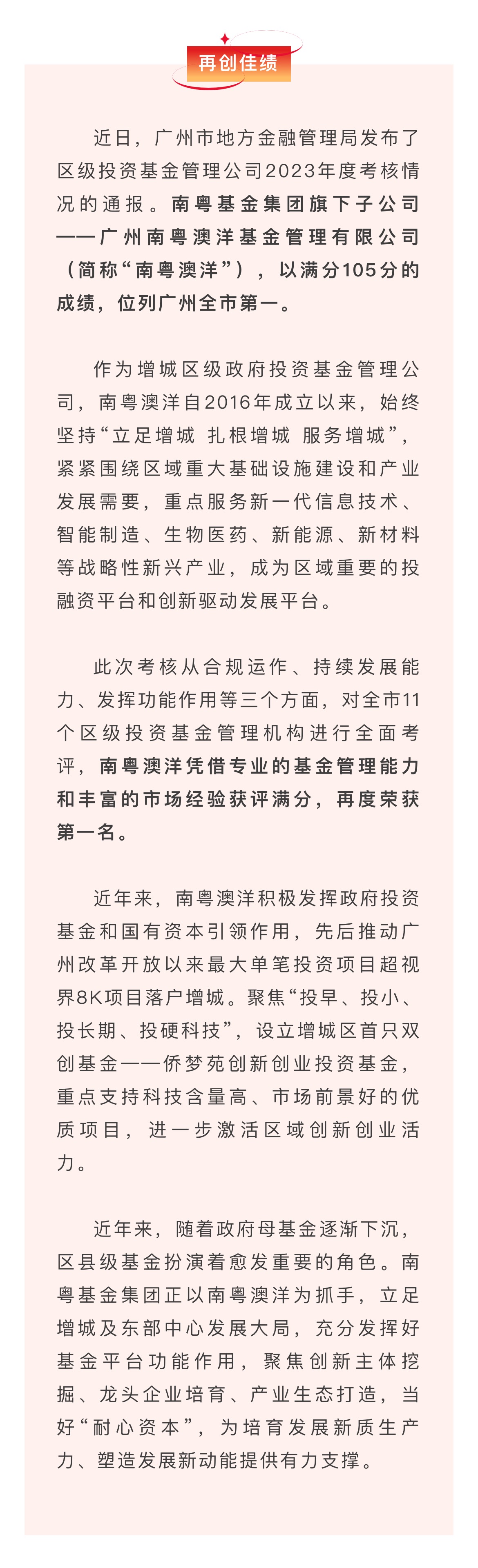 喜報(bào)!南粵澳洋再獲廣州區(qū)級(jí)基金第一
