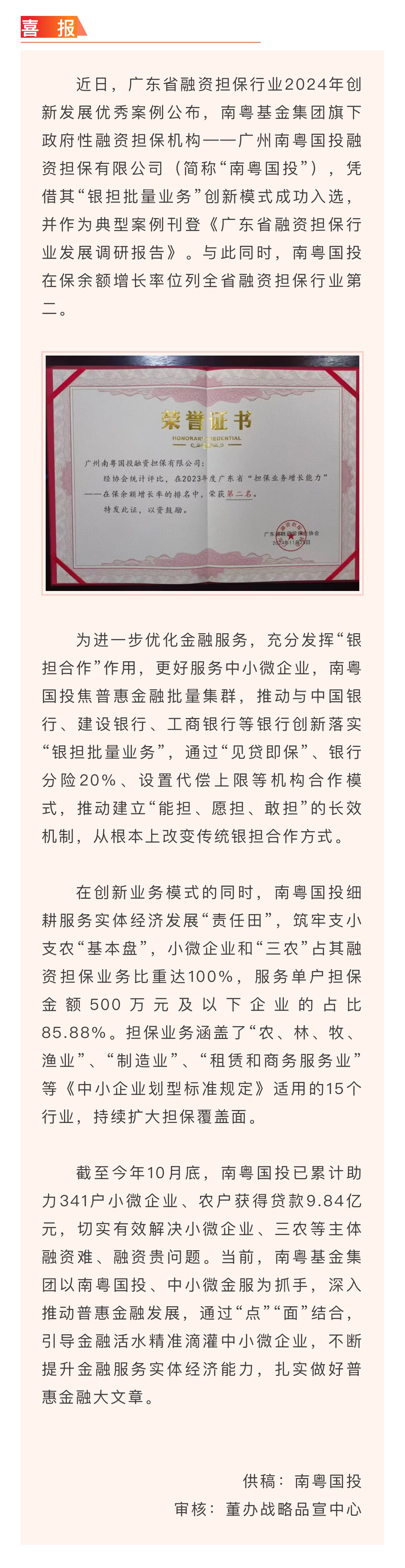 南粵樣本!南粵國(guó)投入選全省融資擔(dān)保行業(yè)創(chuàng)新發(fā)展優(yōu)秀案例