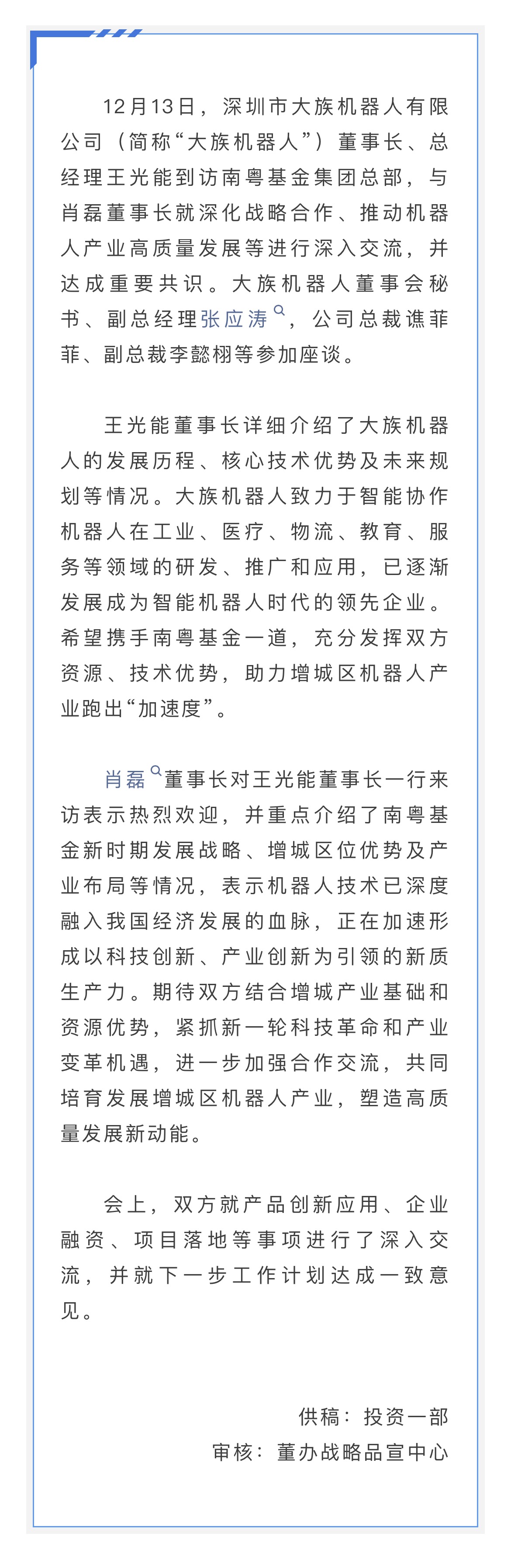 大族機(jī)器人董事長王光能到訪南粵基金集團(tuán)