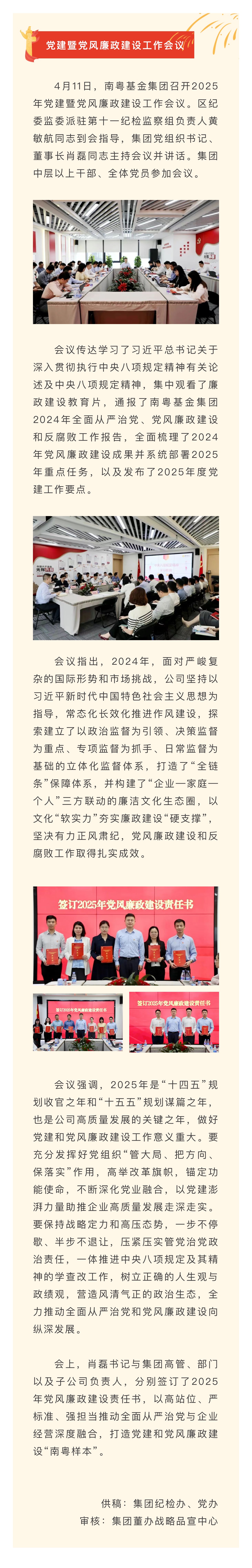 南粵基金集團召開2025年黨建暨黨風(fēng)廉政建設(shè)工作會議