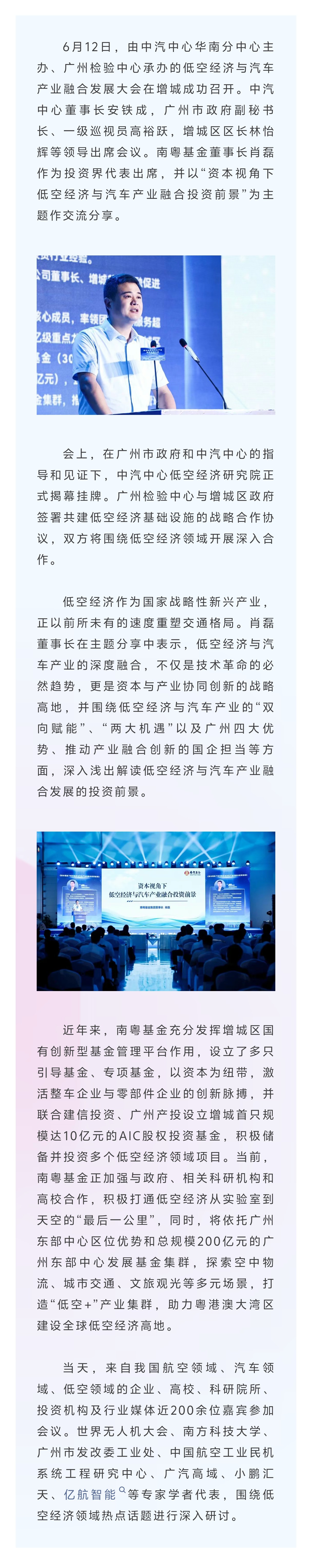 南粵基金董事長肖磊出席低空經(jīng)濟(jì)與汽車產(chǎn)業(yè)融合發(fā)展大會(huì)
