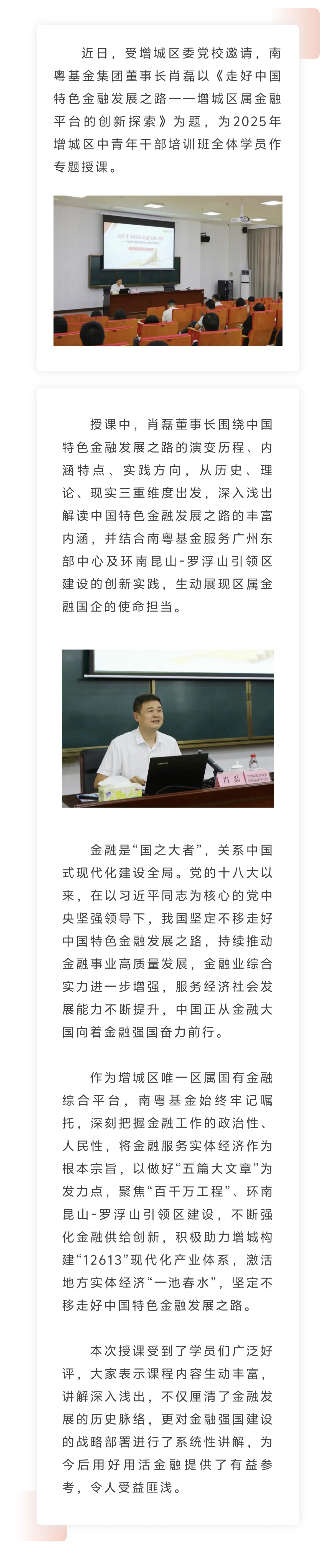 南粵基金集團董事長肖磊受邀為增城區(qū)中青年干部培訓班授課