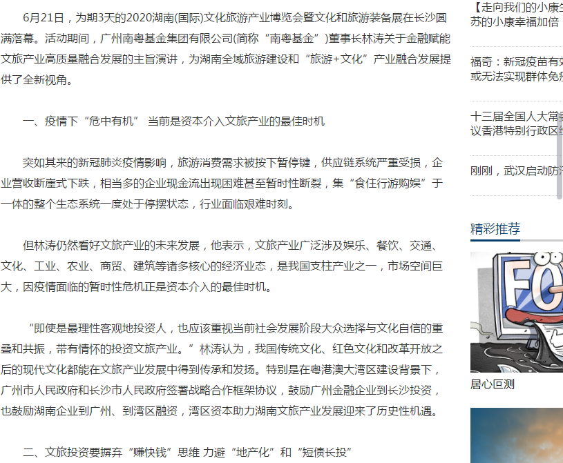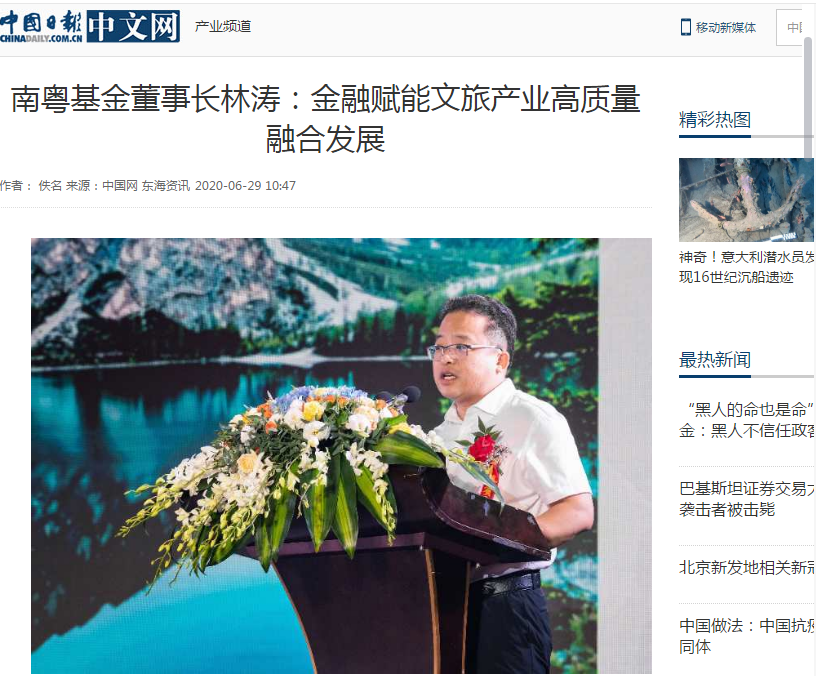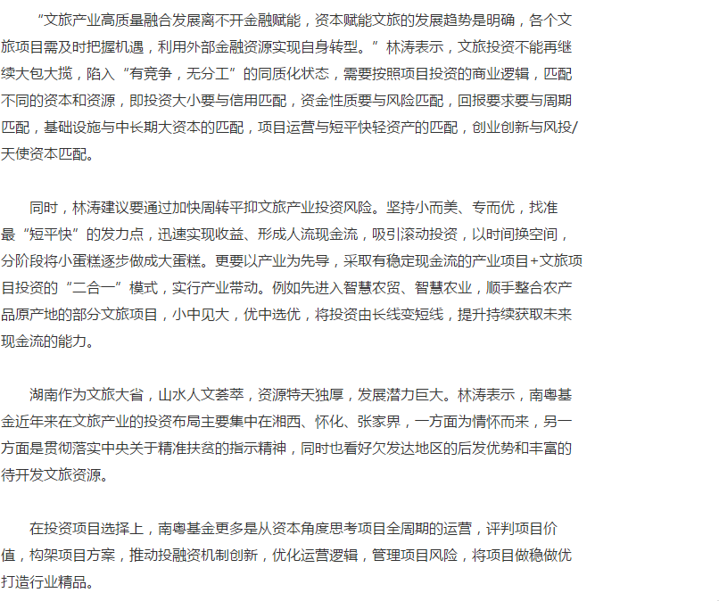 中國(guó)日?qǐng)?bào)|南粵基金董事長(zhǎng)林濤:金融賦能文旅產(chǎn)業(yè)高質(zhì)量融合發(fā)展