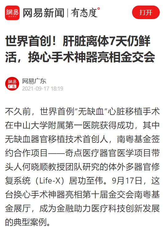 網(wǎng)易新聞|世界首創(chuàng)!肝臟離體7天仍鮮活,換心手術(shù)神器亮相金交會