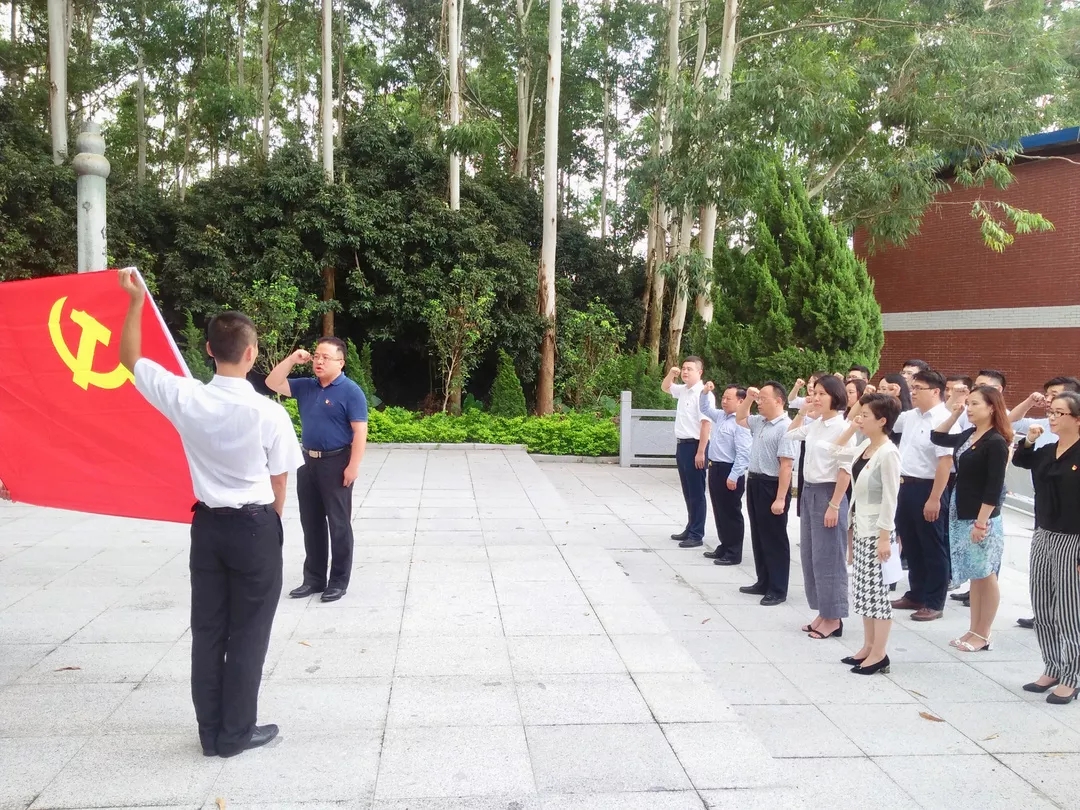 在革命烈士紀(jì)念碑前,全體黨員干部整齊列隊(duì),神情肅穆,向革命先烈敬獻(xiàn)花圈,鞠躬默哀。在鮮紅黨旗下,全體黨員干部佩戴黨徽,舉起右手、握緊拳頭,在南粵基金黨組織書記、董事長(zhǎng)林濤帶領(lǐng)下,莊嚴(yán)重溫入黨誓詞,以此表達(dá)對(duì)革命先烈的深切哀思和崇高敬意。